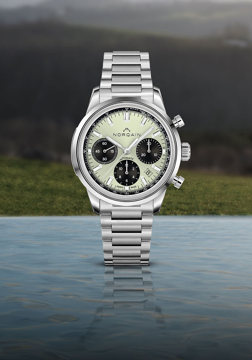 Die Freedom-Kollektion ist eng mit der Wertschätzung der Natur verbunden, die sich über Generationen erstreckt. Das Vintage-inspirierte Design mit dem pistazienfarbenen Zifferblatt lässt die Ästhetik der 60er-Jahre aufleben.