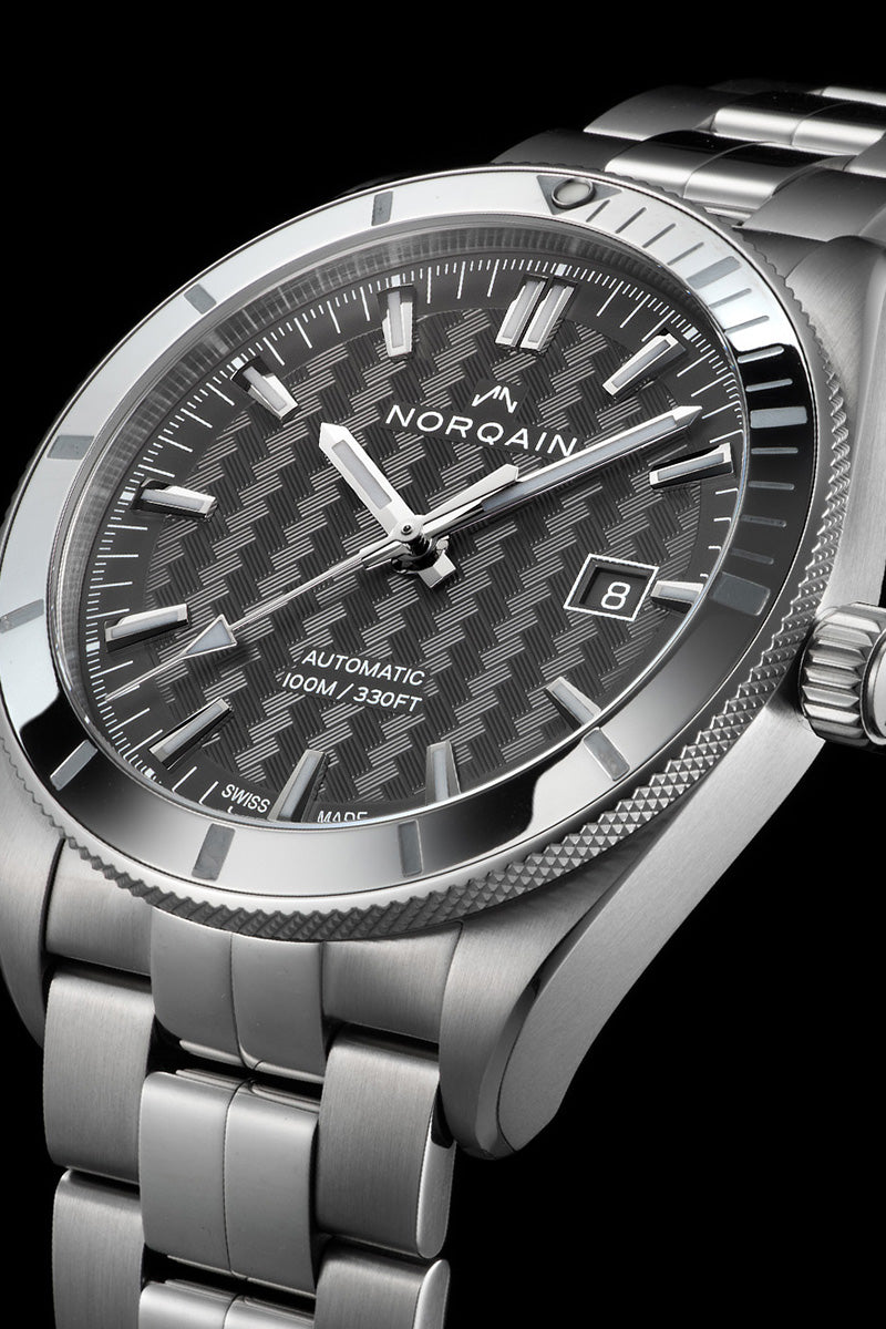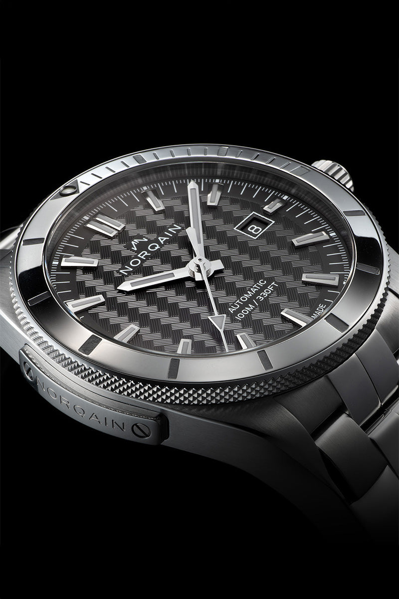 The Adventure line embodies the thrill of exploring and conquering nature’s playground – the trails, the summits and the tides. The unique NORQAIN pattern dial is inspired by the Swiss mountains.