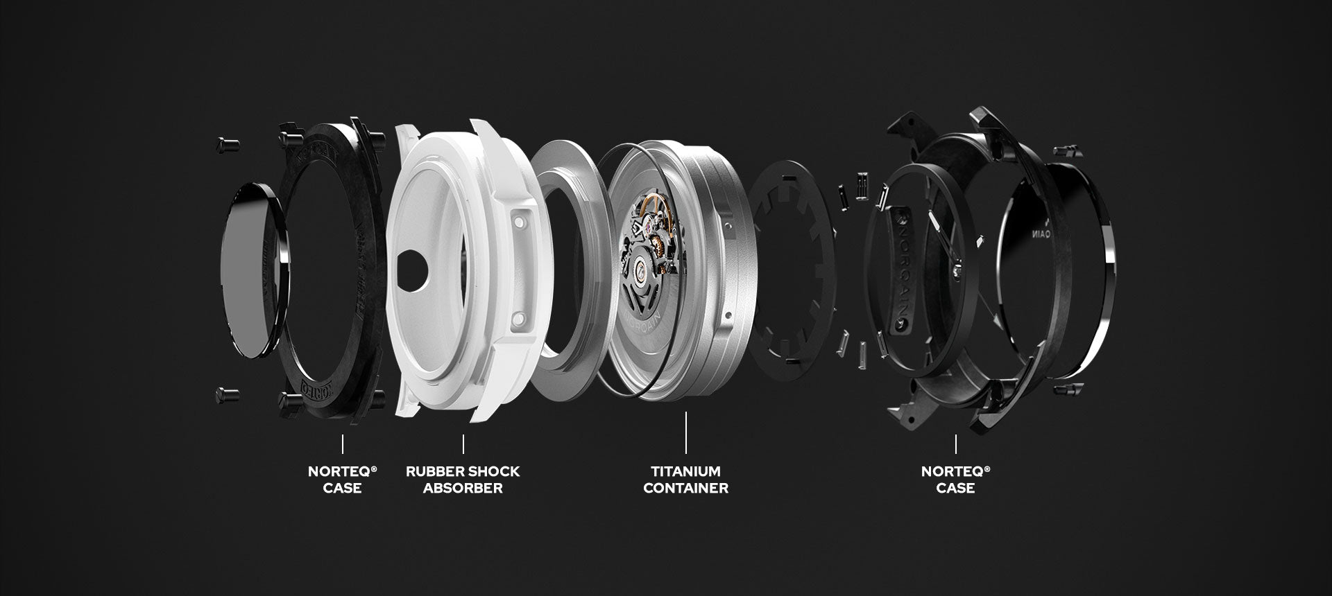The Wild ONE, made with our proprietary, ultra-robust and ultra-light NORTEQ® carbon fibre material, is the ultimate high-performance sports watch. Six times lighter than steel and 3.5 times lighter than titanium this Wild ONE has been designed in collaboration with Jean-Claude Biver, the NORQAIN team and the best Swiss suppliers.