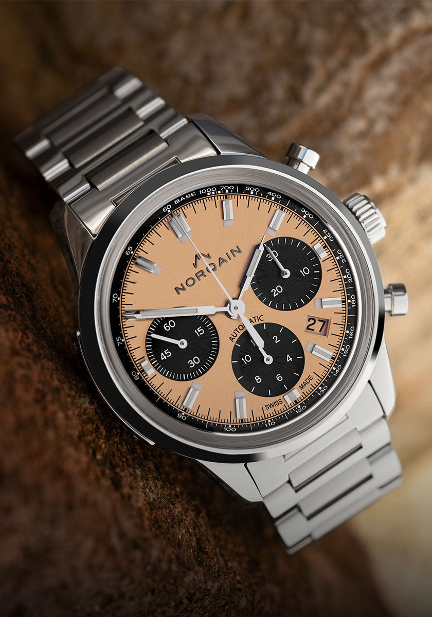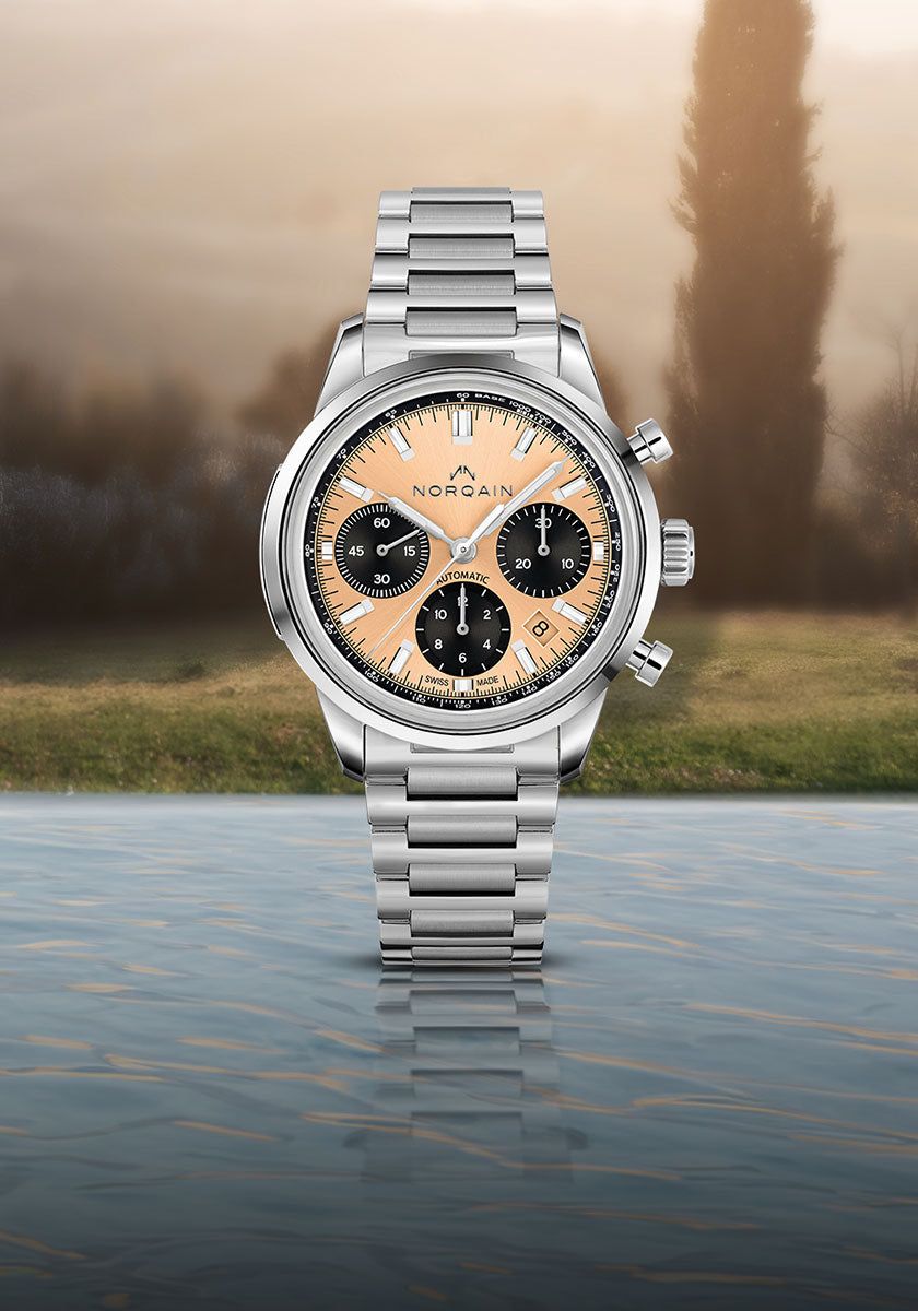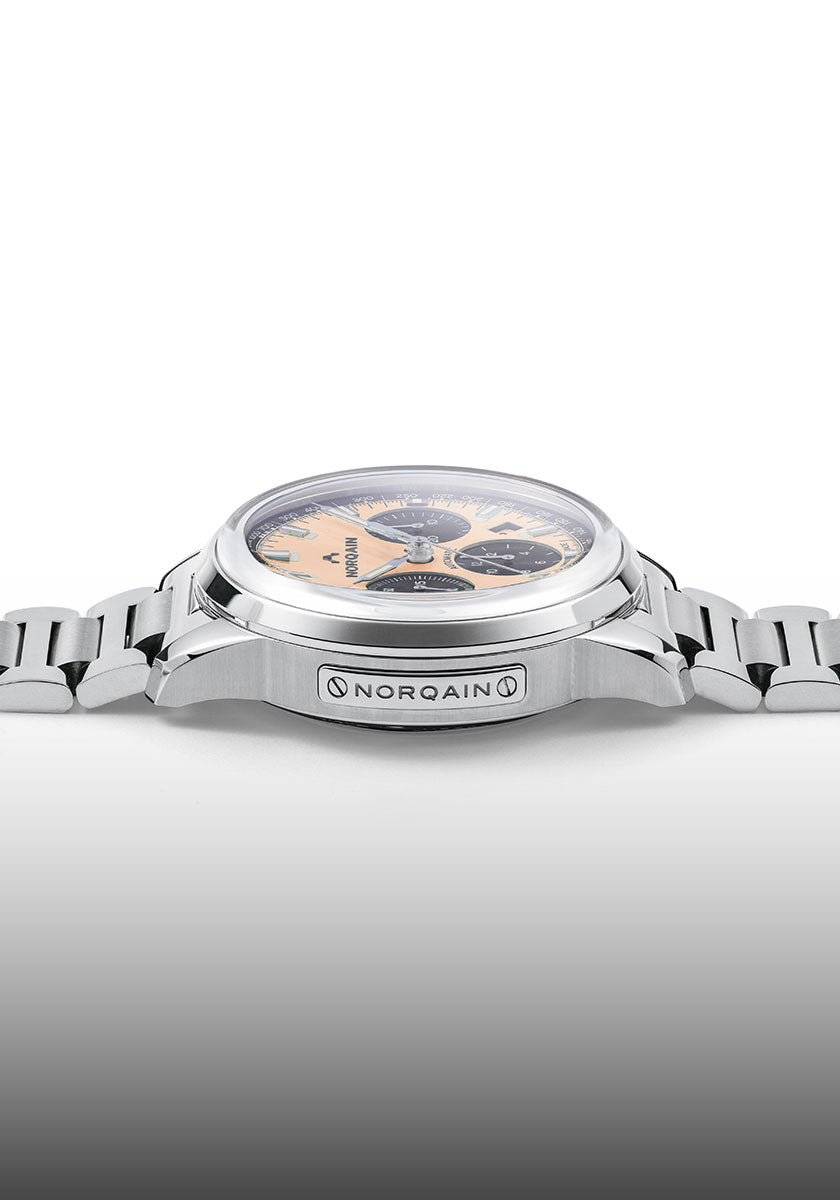 La collezione Freedom è fortemente legata all’amore per i grandi spazi aperti che si tramanda fra le generazioni. Gli elementi di design di ispirazione vintage evocano l'estetica degli anni '60. Questo orologio con quadrante color pesca è limitato a 300 pezzi.
