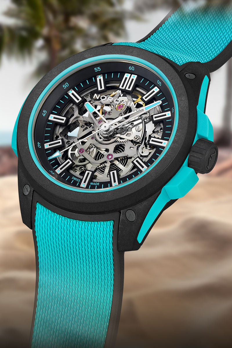 Realizzato con il nostro materiale in fibra di carbonio NORTEQ® brevettato, ultra resistente e ultraleggero, il Wild ONE è l'orologio sportivo ad alte prestazioni per eccellenza. Sei volte più leggero dell'acciaio e 3,5 volte più leggero del titanio, questo Wild ONE è stato progettato in collaborazione con Jean-Claude Biver, il team NORQAIN e i migliori fornitori svizzeri.