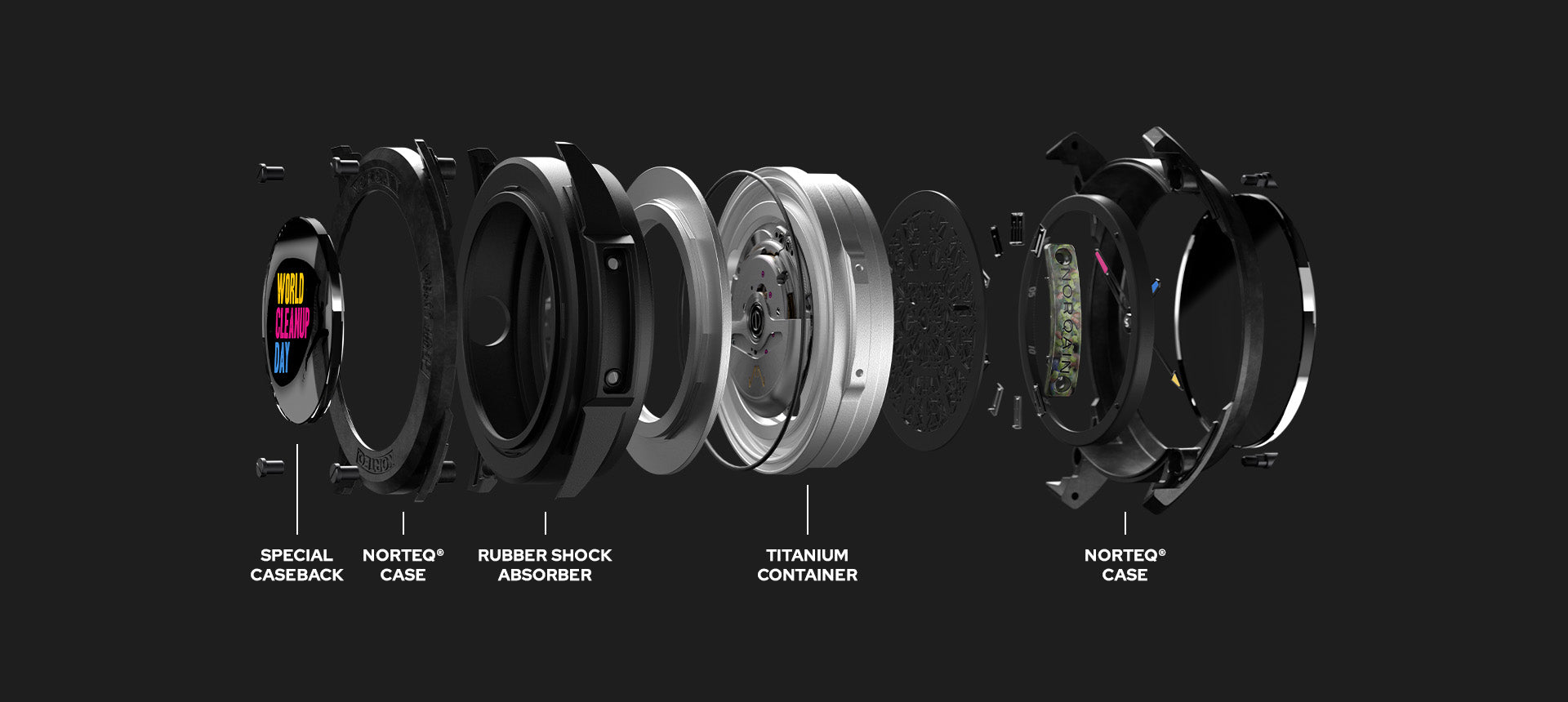 Questo orologio ultra-leggero e ultra-robusto celebra la nostra partnership con il World Cleanup Day. Questa edizione esclusiva è limitata a soli 15 pezzi.