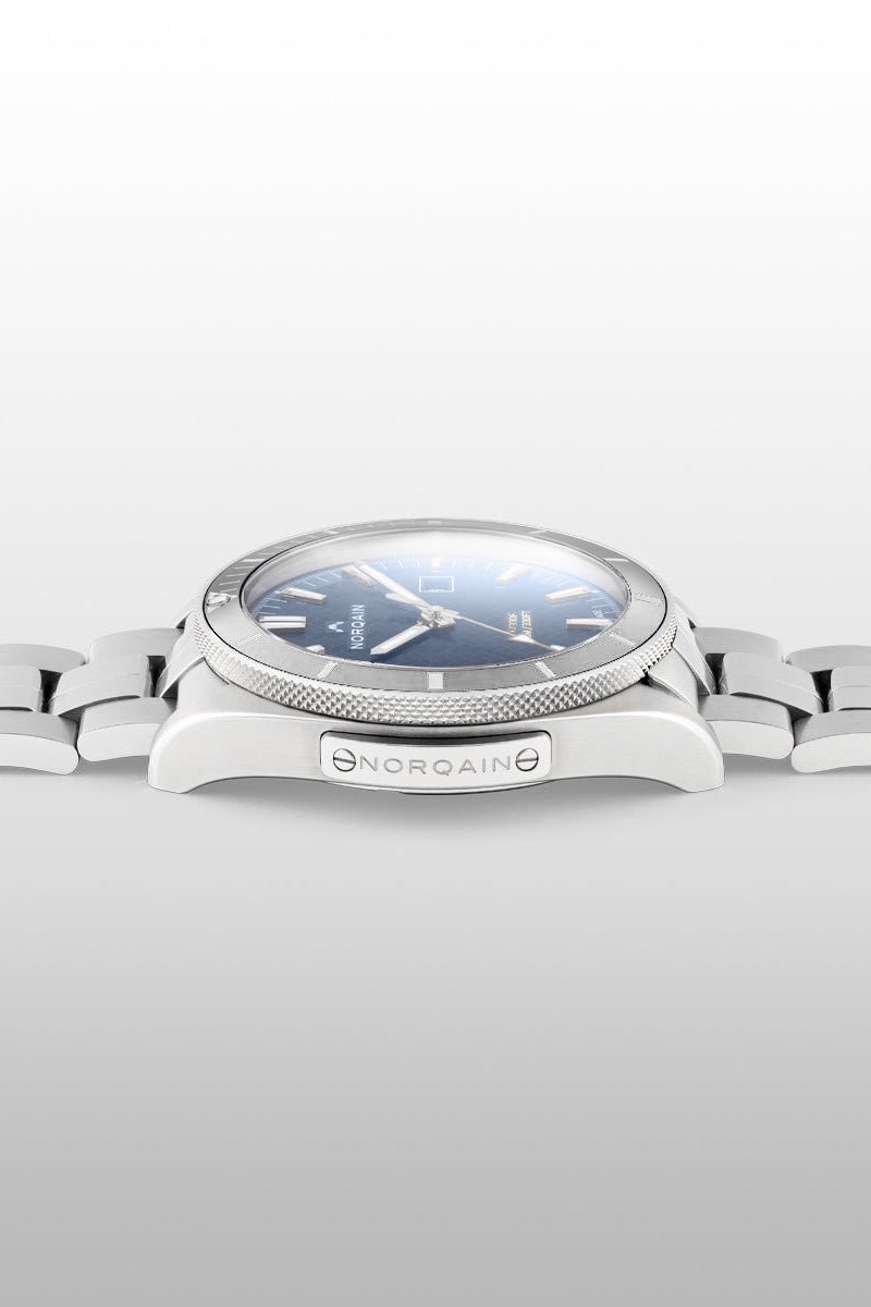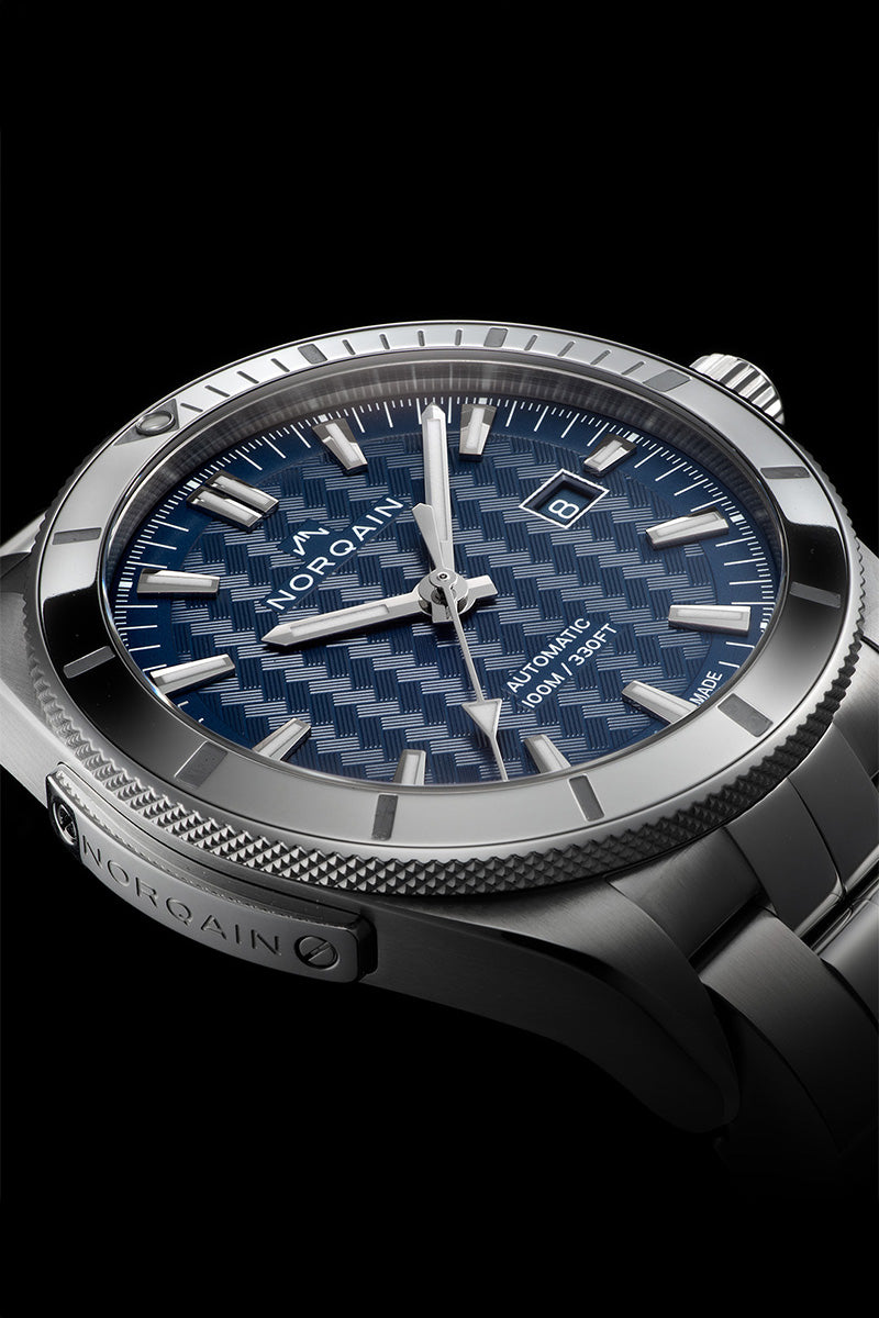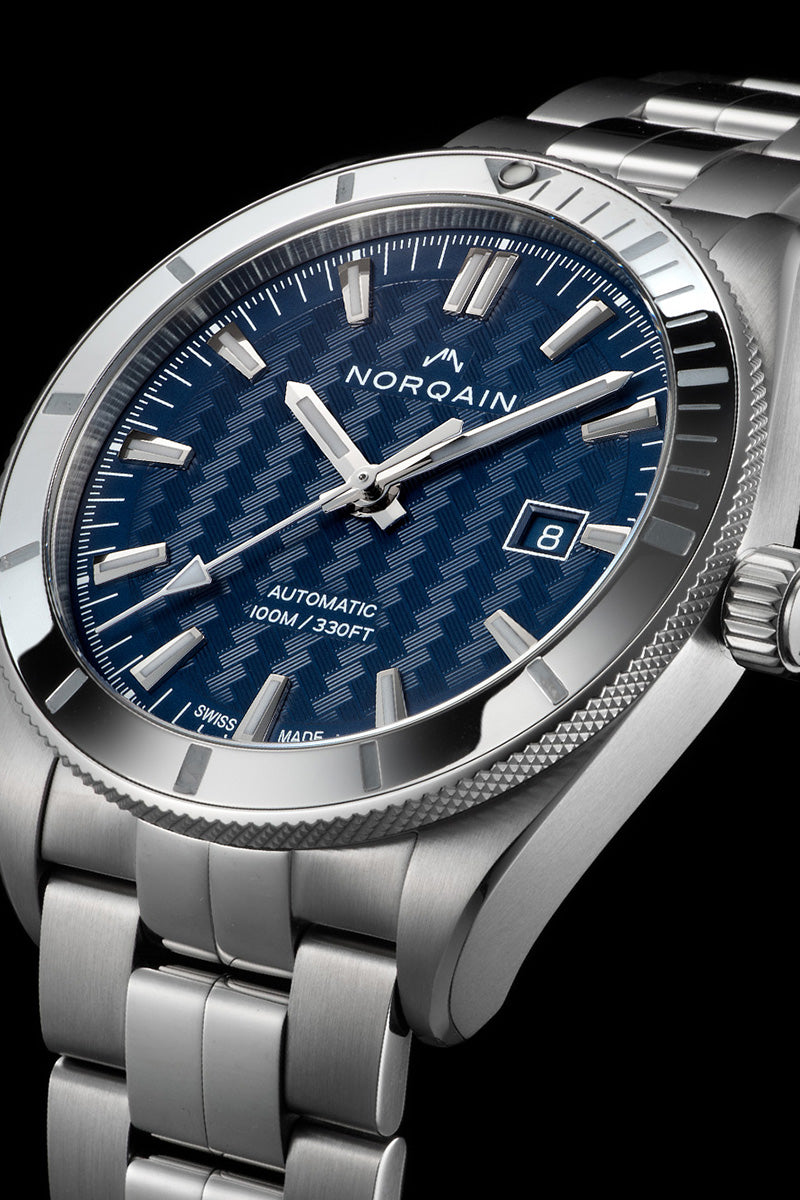 アドベンチャー・コレクションのコンセプトは、トレイル、山頂、海、湖などの大自然に挑むスリルを体現することです。文字案に施されたユニークなノルケインパターンは、スイスの山々からインスピレーションを得ています。