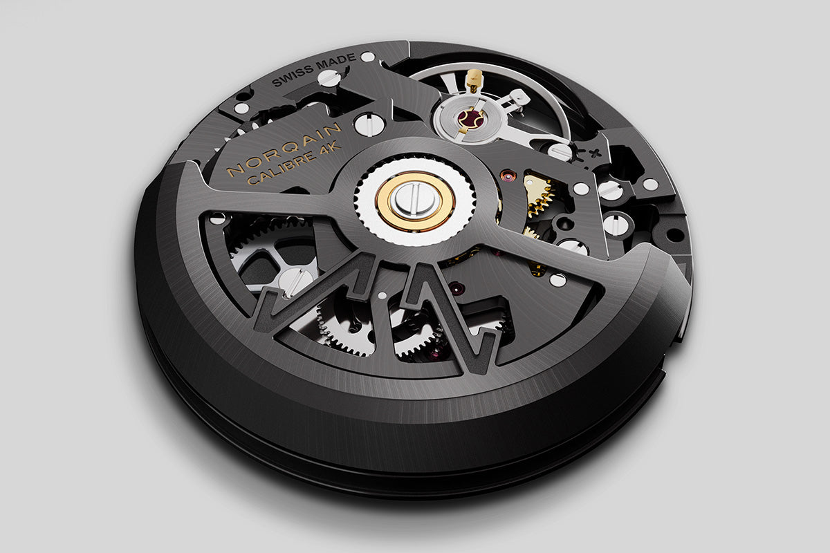 Developed with our partners at AMT, this skeletonised, chronometer-certified automatic movement has a 65-hour power reserve, 24 hours more than in previous NORQAIN skeleton watches. The movement tells NORQAIN’s story, too. Its bridges and rotor are sculpted into shapes inspired by mountain peaks, now a NORQAIN signature and a symbol of the company’s ambition to create watches that challenge people to go further and to push their limits.