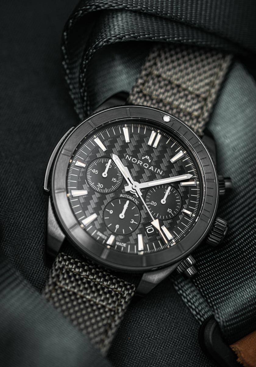 The Adventure line embodies the thrill of exploring and conquering nature’s playground – the trails, the summits and the tides. The unique NORQAIN pattern is inspired by the Swiss mountains.