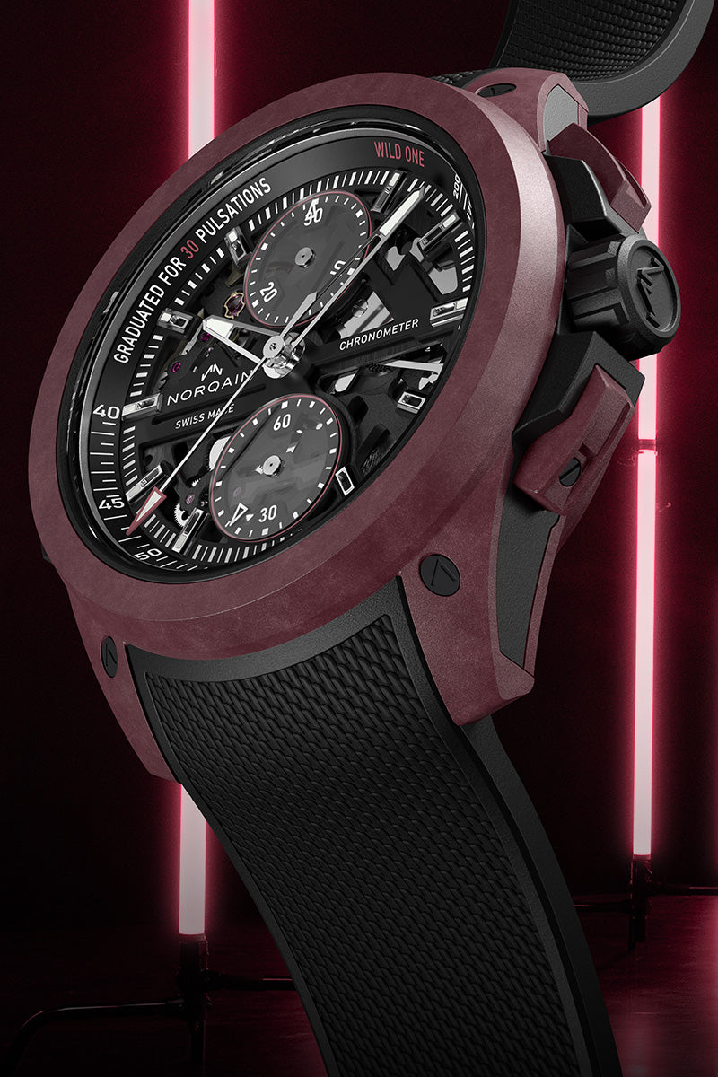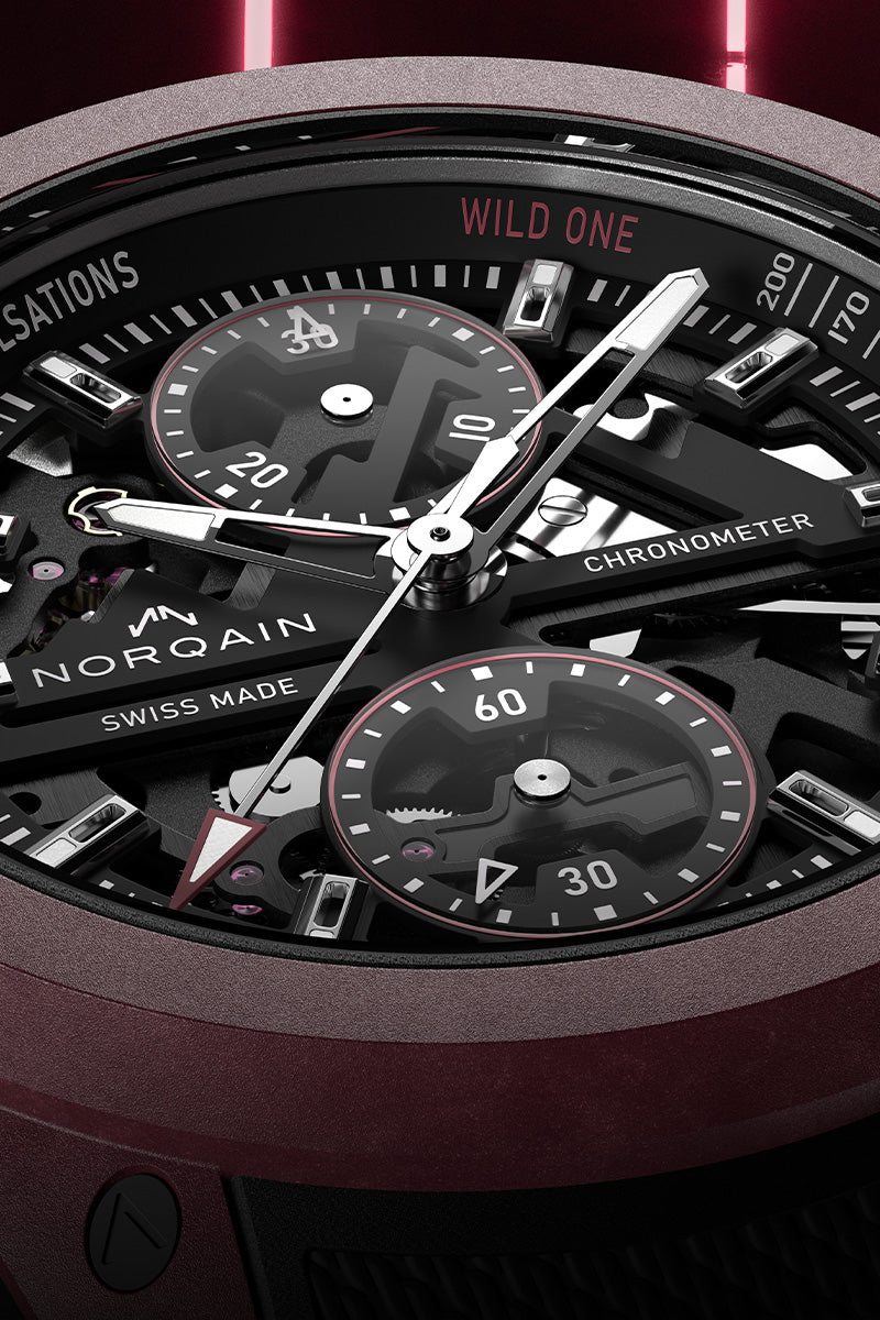 The new Wild ONE Skeleton Chrono stands out with its bold, high-performance design. Its floating transparent discs enhancing the watch’s lightness while offering an even more open view of the NORQAIN 8K Manufacture Calibre. A truly sporty and dynamic timepiece, the Wild ONE Chrono is built for action, shock-resistant, high-performance, and engineered to keep pace with intense competition and high-energy moments. Limited Edition to 400 pieces.
